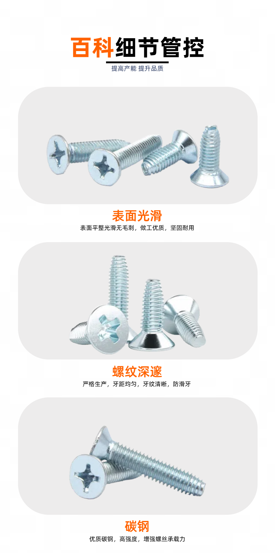蓝白锌十字沉头三角牙自锁螺钉介绍